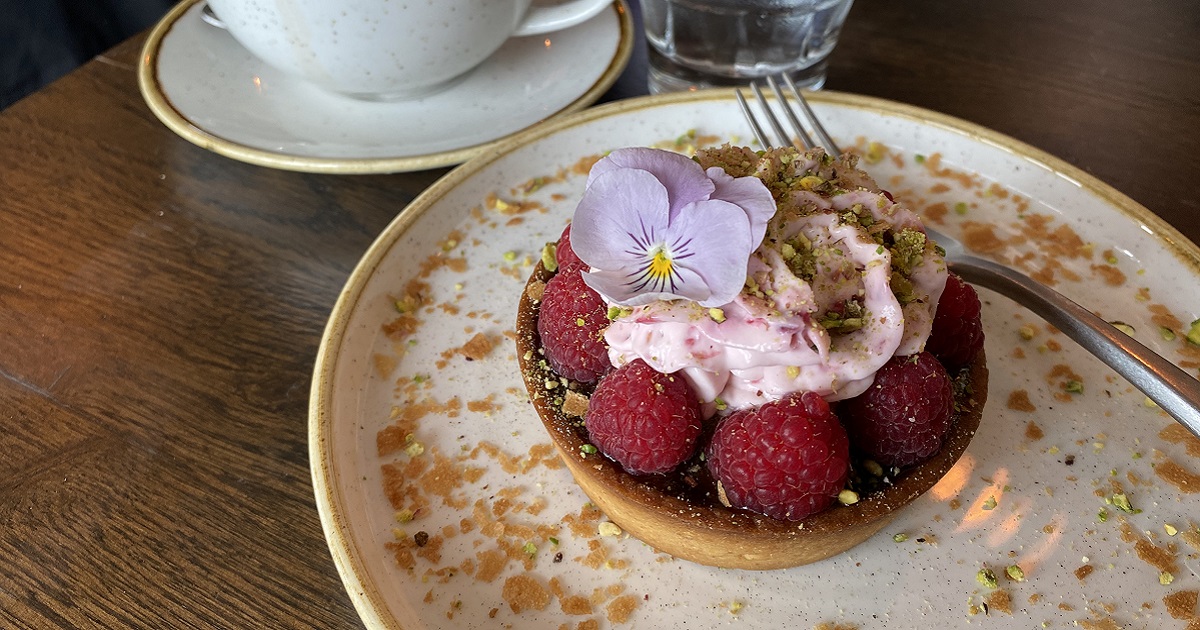 Raspberry & Pistachio Tart £7