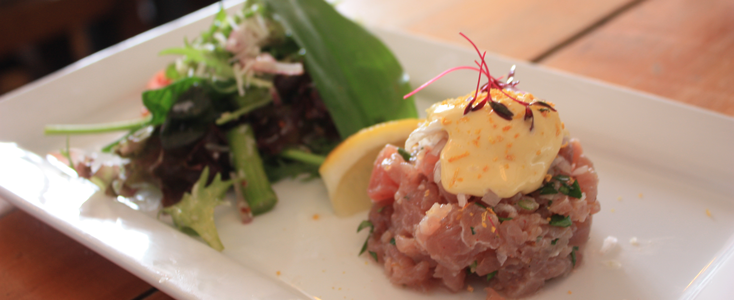 But when it comes to the food, it’s the quality of the dishes that delight. We picked for starters Grilled lemon & teriyaki chicken skewers with chilli, peanut & lemon grass dip (£5.95) and Yellow fin tuna tartare with Kentish asparagus & parmesan salad, poached quail’s egg & lemon hollandaise (£6.50) and both were as good as they sound; clean, fresh food.